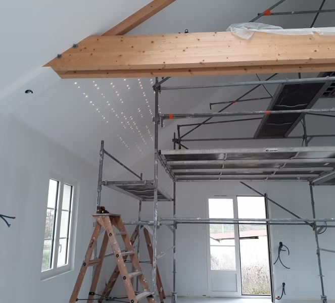 Pour vos projets de construction neuve, nous réalisons tous les travaux de plâtrerie : cloisons, doublages, plafonds, enduits et finitions. Notre expertise garantit un résultat parfait dès la première étape de votre projet.